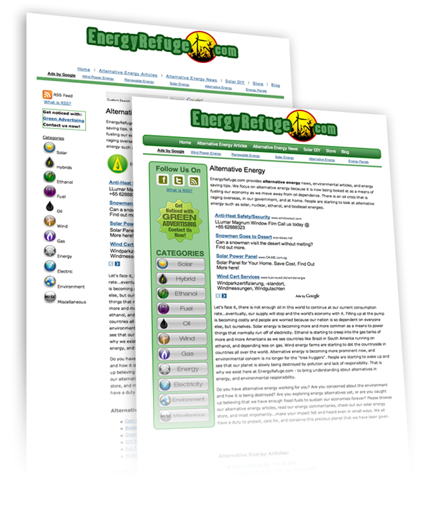 Redesigned UI for the website www.EnergyRefuge.com, a website that provides current energy news headlines that cover alternative energy news, renewable energy news, and general energy articles.